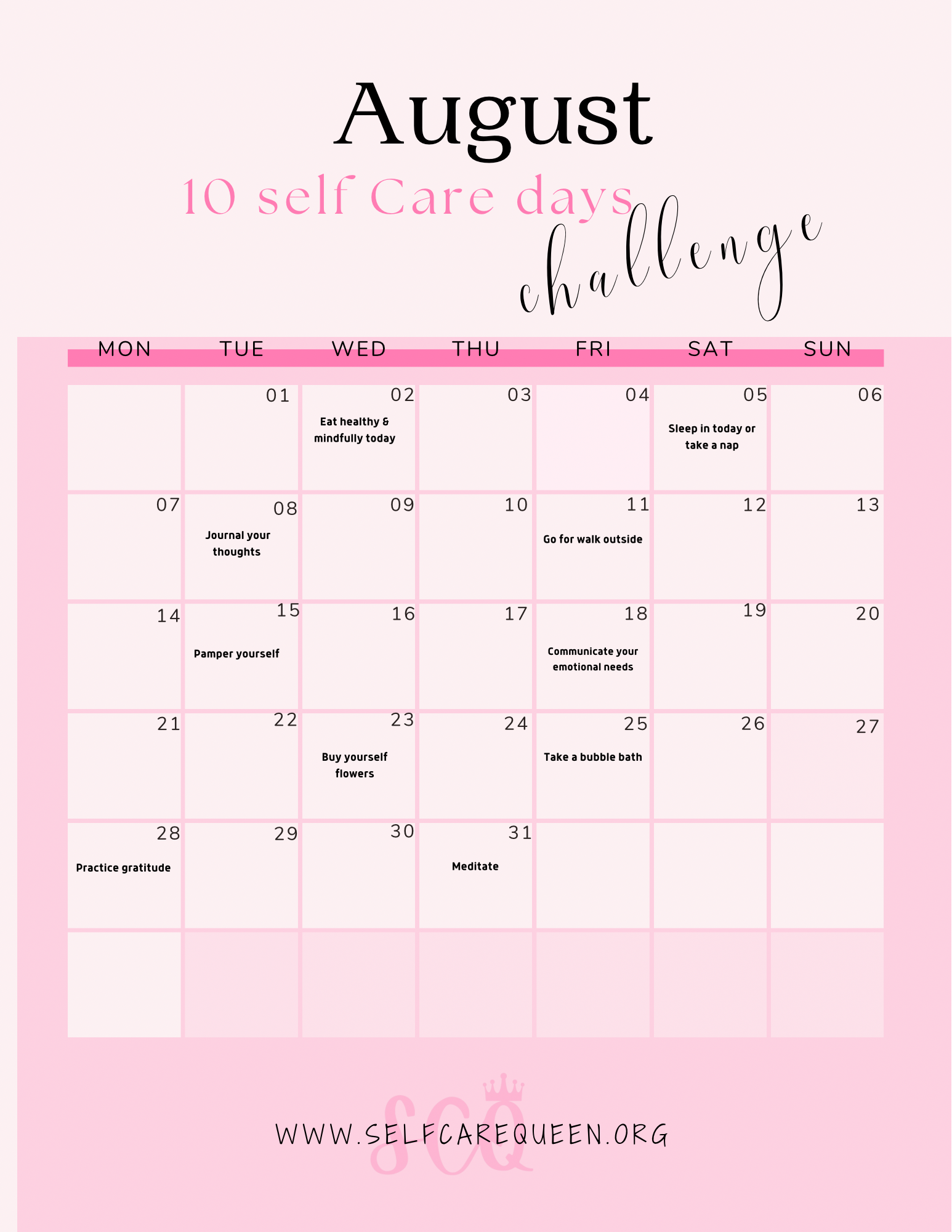 August selfcare freebies